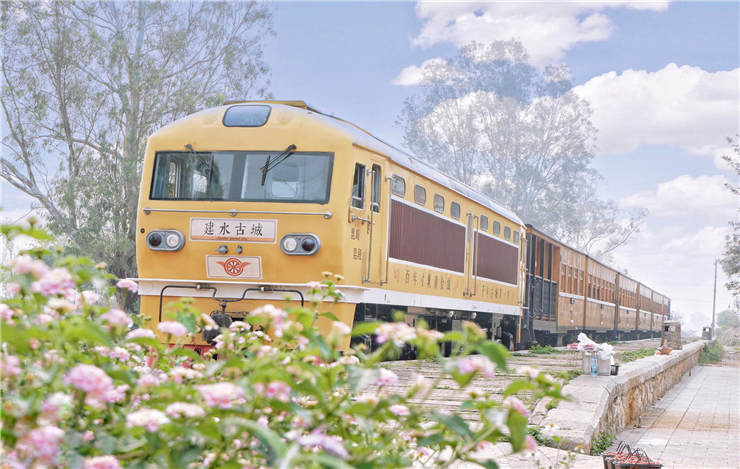 建水還有一輛開往時(shí)空隧道的百年小火車,在建水臨安站出發(fā),目的地是團(tuán)山站,全長13公里。這是一個(gè)有上百年歷史的米軌鐵路和鐵皮火車,沿途會(huì)不時(shí)地???,游覽建水的古跡民居。列車將旅游從建水古城的千百歷史帶向了民國時(shí)期。