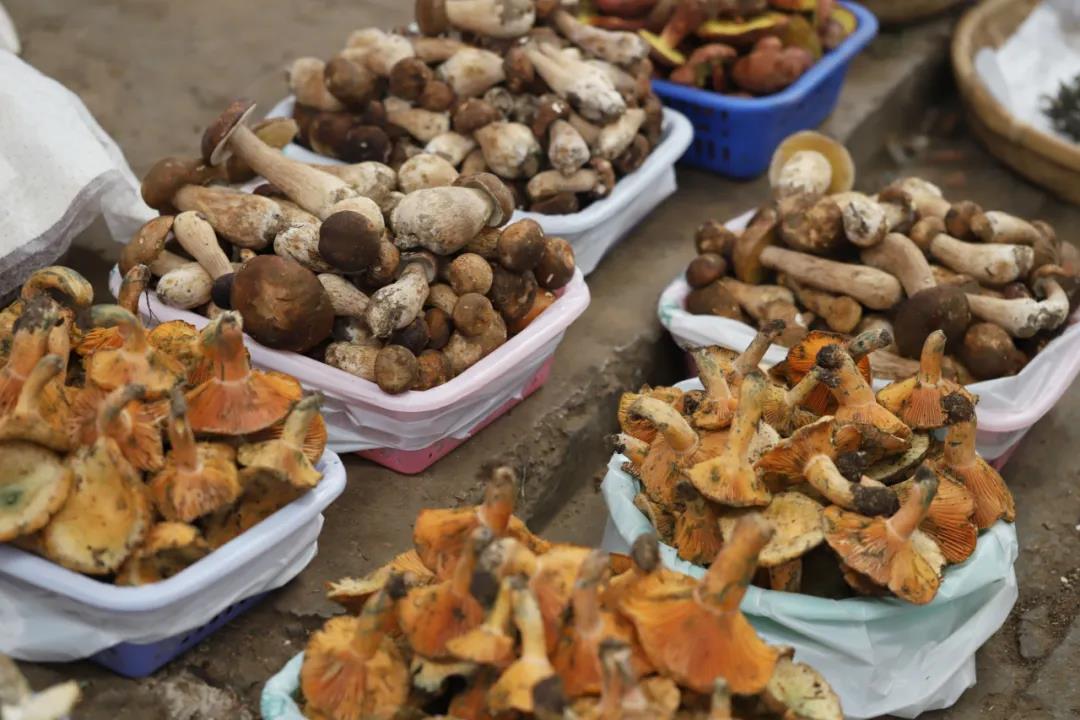 幾場(chǎng)雨過(guò)后,野生菌上市量逐漸增加,價(jià)格也有所回落。目前,市場(chǎng)內(nèi)已有雞樅菌、紅蔥菌、雞油菌、黑牛肝菌、奶漿菌等20余個(gè)野生菌品類。