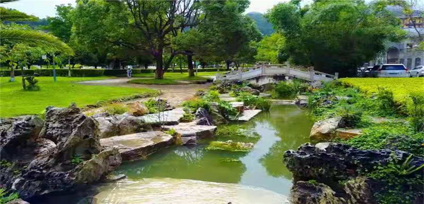 被雨沖涮過(guò)的游道顯得格外素凈,樹葉在陽(yáng)光的照射下閃著光,天池水面清澈無(wú)比,就像一面鏡子,映照著藍(lán)天、樹木和云朵。
