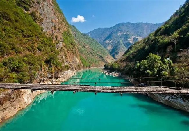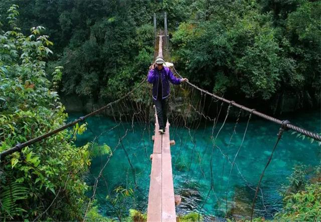 因?yàn)榱锼魑kU性較高,現(xiàn)在也修建了吊橋。走在驚險的吊橋上,你可能會為他們捏把汗,但這卻是當(dāng)?shù)厝俗钇匠R彩亲钪匾慕煌ǚ绞健?