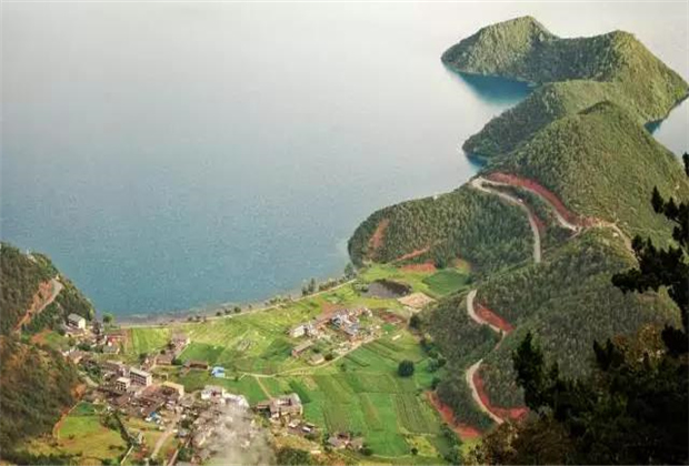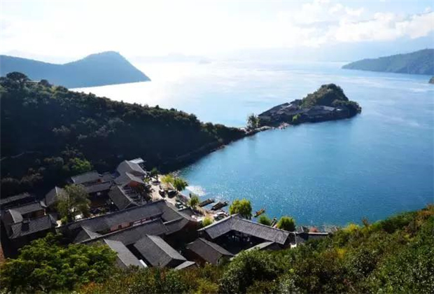 再走近看,里格半島是這樣的,像是一個世外桃源。此處個人認為是瀘沽湖風景最佳的地方,不管是站在山上的觀景臺俯瞰整個里格半島的美,還是乘船在湖上繞里格半島玩一圈,都會給人不一樣的感受。