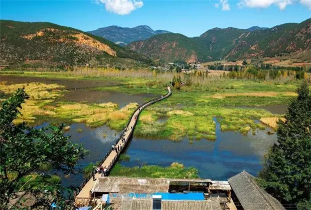 草海中最著名的是有著“天下第一鵲橋”之稱的走婚橋,它是草海蘆葦叢中延伸出來的一座長達300米的木橋。走婚橋橫跨草海,穿過蘆叢,直達兩岸村落,為兩岸村民、“走婚”的“阿夏”們提供了便捷的通道。