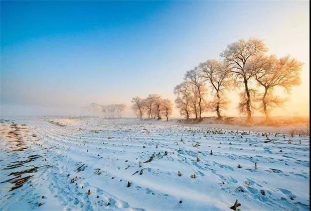 一排排的樹木在陽光的映襯下,發(fā)出金色的光芒,可惜太陽一出來,這美景便也不復(fù)存在了。