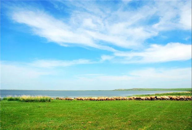 這里天高云淡,牛羊在吃草,和綠油油的草地形成了一幅絢麗奇美的畫卷。