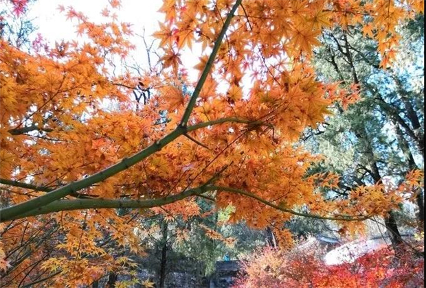 除了有紅楓還有黃色的銀杏,更有門庭若市的人群,就是一個歡樂的伊甸園,每年來這里賞楓葉的各地游客絡(luò)繹不絕。