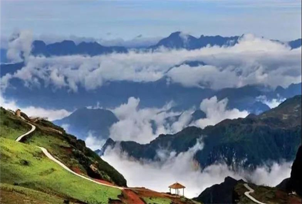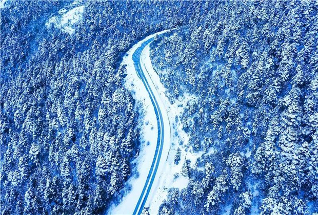 從遠處俯視下來,在碧藍天幕的映襯下,山上仿佛蜿蜒著一條巨龍,高聳的山嶺間,絲絲白云繚繞不散,仿佛置身仙境一般。再走近些,蒼翠挺拔的雪松仰視蒼天,山川也張開懷抱,大好河山,無限美景。
