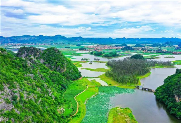 瞰臨而下,普者黑自然天成的山水秘境引人注目,這里山巒疊嶂,青峰林立,縱橫交錯的湖泊河流串聯(lián)起每一片芳草萋萋的草地;萬畝荷田,競相綻放,荷葉覆蓋在水面上,一株株粉紅色的花苞亭亭玉立,或含苞待放,或隨風搖曳,放眼望去,還有那錯綜復雜的溶洞、獨特的喀斯特地貌、清如眼眸的池水……是絕佳的避世之地。