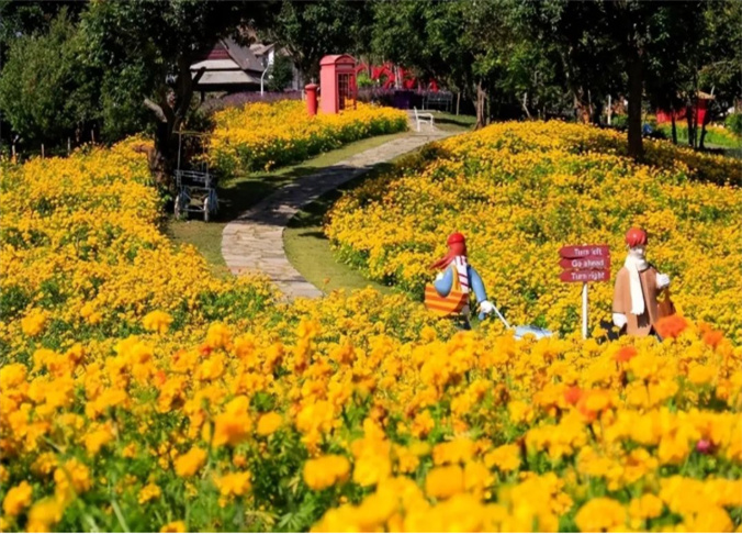 成片的花田和飛舞的孔雀見(jiàn)證著多少情侶、夫妻的浪漫瞬間。