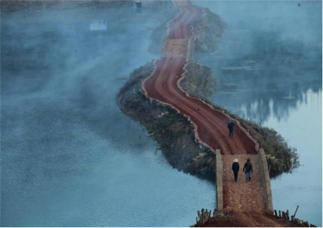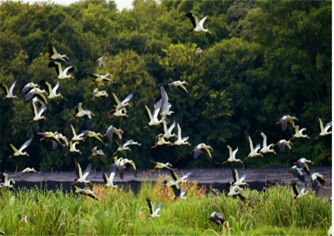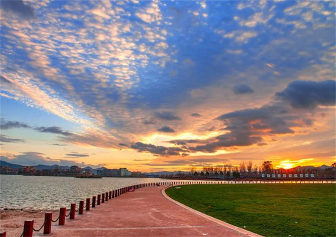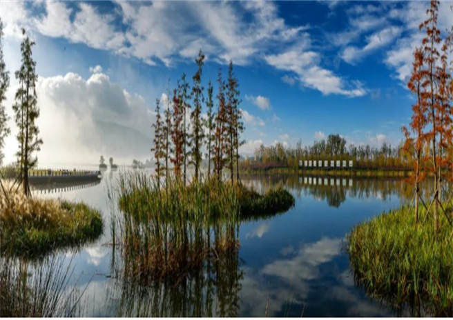 矣邦池之南,復(fù)有遠(yuǎn)山東西橫屬,則此中亦一南北中洼之坑,而水則去來(lái)皆透于穴矣。這是當(dāng)年徐霞客游歷至此所寫。而今的黃草洲國(guó)家濕地公園內(nèi),碧波蕩漾,落英繽紛,蜿蜒的小道環(huán)濕地而建,通向湖泊的深處,美不勝收。