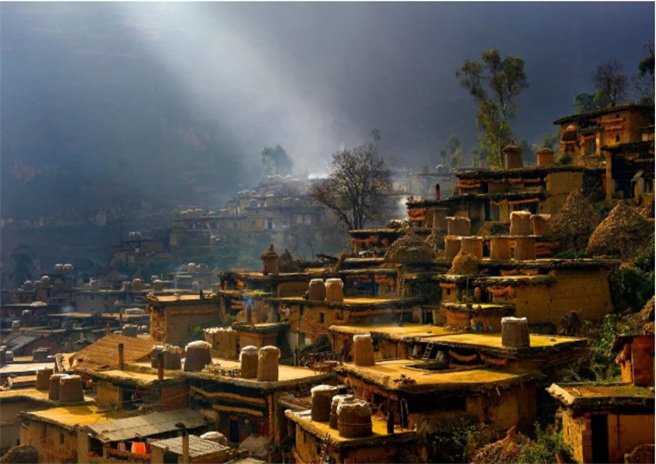 城子古村的房子依山而建,上下相連,左右相通,蔚為壯觀。土掌房融合了當(dāng)?shù)匾妥搴蜐h族民居的特點(diǎn),冬暖夏涼,具有鮮明地方特色,堪稱中國(guó)民居建筑文化與建造技術(shù)發(fā)展史上的“活化石”。