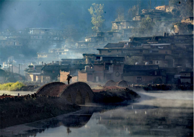 炊煙裊裊,鄉(xiāng)愁悠悠。行走在古村中,濃郁的人文風(fēng)情,古樸的土掌房建筑,一種滄桑歲月沉淀出的厚重感油然而生。