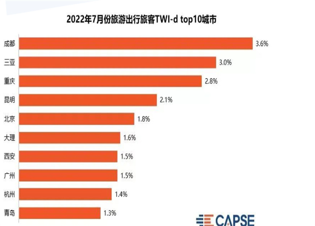 日前,CAPSE發(fā)布《2022年7月旅客出行意愿指數(shù)(TWI)分析報告》,對7月份游客旅游出行意愿最強的10個國內(nèi)城市作了統(tǒng)計分析。報告顯示,本月云南省共有昆明和大理兩地上榜,昆明以2.1%的意愿指數(shù)位列第四,大理以1.6%的意愿指數(shù)位列第六。