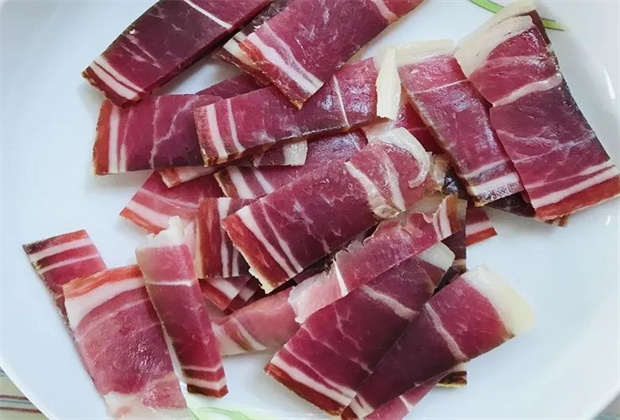 麗江永勝縣三川壩自古為物產(chǎn)豐饒之地。三川壩人采用傳統(tǒng)方法腌制的火腿,色澤油潤(rùn),香味醇厚,是麗江火腿中的上品。三川火腿制作技藝被列入云南省非物質(zhì)文化遺產(chǎn)代表性項(xiàng)目。麗江旅行社,麗江旅游小編帶你去體驗(yàn)舌尖上的美食---永勝火腿!