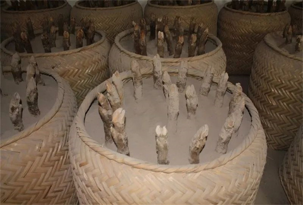 后將火腿放入竹囤簍,用篩子篩過的細(xì)密灶灰將火腿深深掩埋、壓實(shí),以進(jìn)一步吸收火腿里的潮氣,與外界隔絕,如此儲(chǔ)存陳化半年以上。灶灰存放時(shí)間越長(zhǎng),火腿水份越少,肉越精干,香氣越足,味道也越醇厚。三川火腿切開,色澤鮮紅、通透油潤(rùn)、滿屋生香,可以直接生吃,瘦肉不柴、肥肉不膩、皮好嚼,咸度恰到好處,非??煽?。